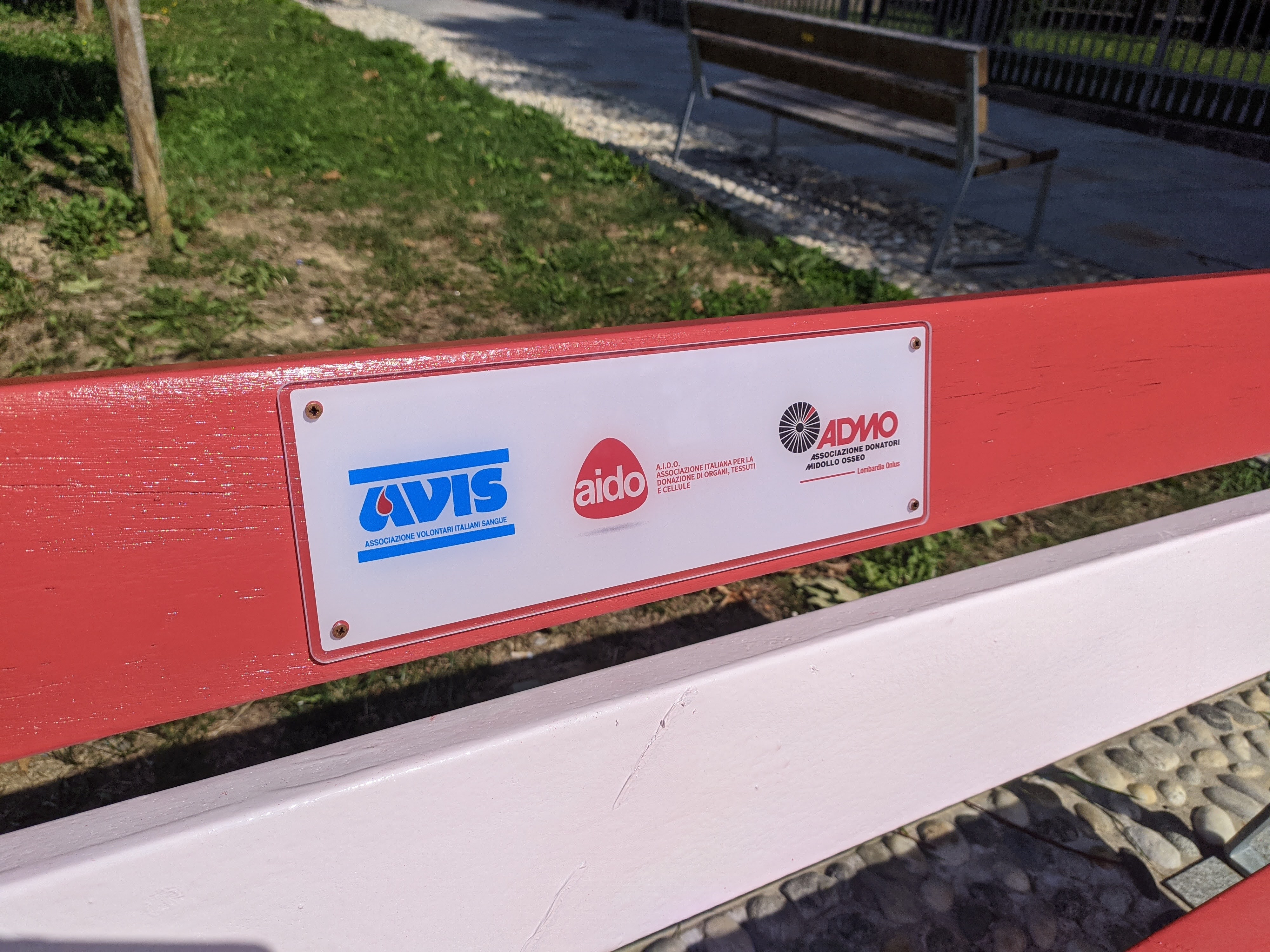 Sono finiti pochi giorni fa i lavori di rifinitura della nuova “Panchina del Donatore”. Essa, posizionata nel piazzale della scuola dell’infanzia, è stata realizzata dalle associazioni AVIS (Associazione Volontari Italiani Sangue), AIDO (Associazione Italiana Donatori Organi) e ADMO (Associazione Donatori Midollo Osseo).