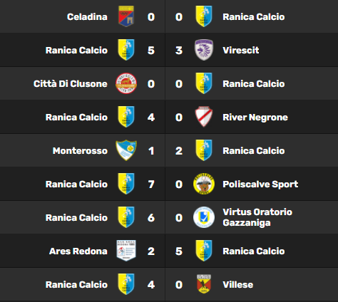 Veniamo subito al concreto: il Ranica Calcio ha disputato questa domenica il match casalingo contro la Villese vincendo per quattro a zero, ma la fila di successi è ben più lunga. In questa stagione i gialloblù hanno collezionato solo due pareggi (per 0-0), mentre tutti gli altri risultati sono state vittorie. Al di là della striscia vincente, è importante analizzare altri parametri, a partire dai gol fatti e subiti. La porta avversaria è stata sfondata ben 33 volte in 9 partite, vale a dire una media di quasi 4 gol per partita; a differenza della propria rete che conta solo 6 gol subiti ed è stata inviolata per 6 partite.