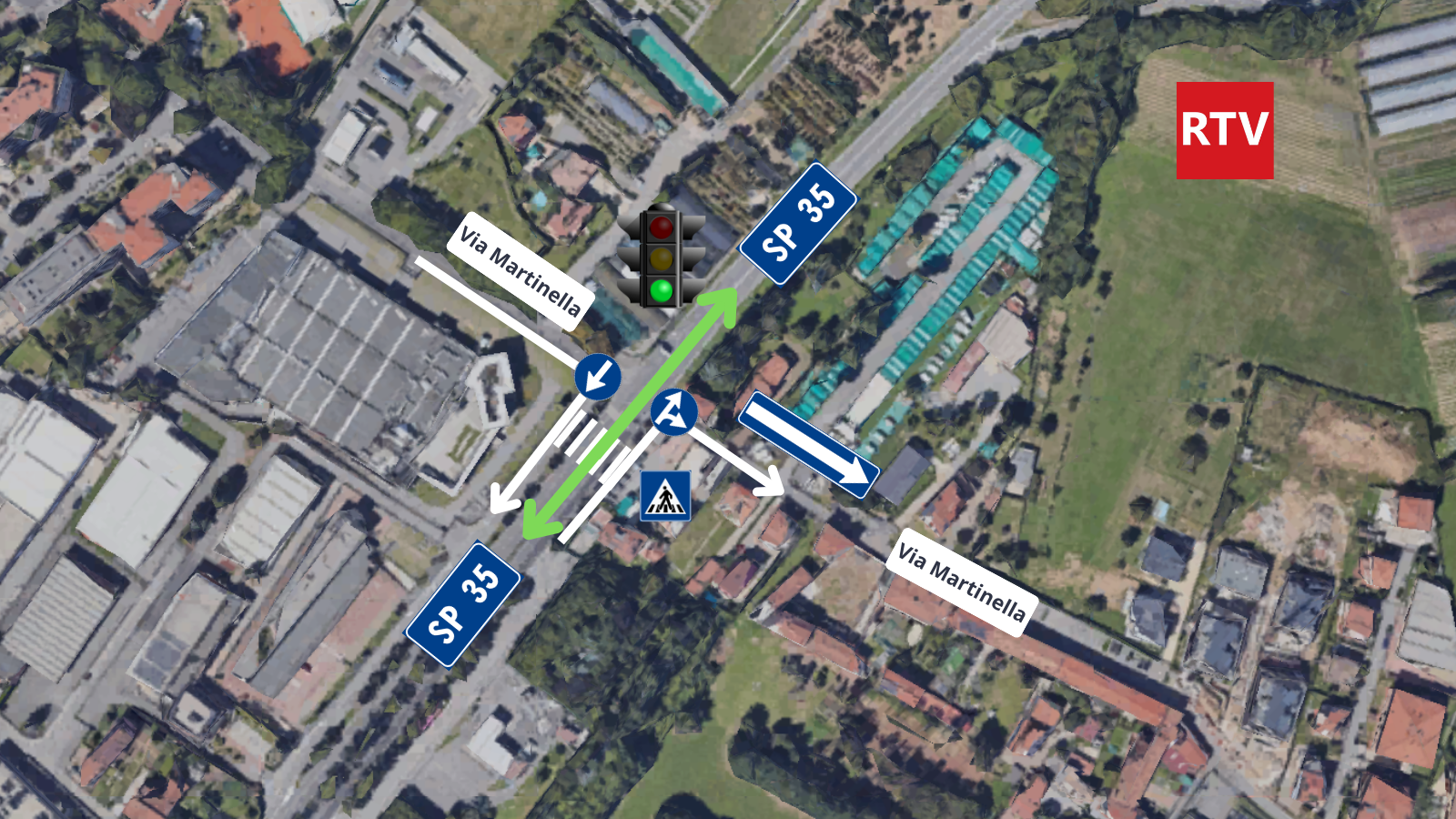 - Semaforo verde fisso sulla SP35 all’intersezione con via Martinella, per favorire il flusso principale dei veicoli in direzione Val Seriana.