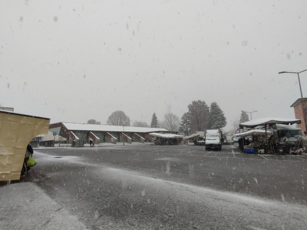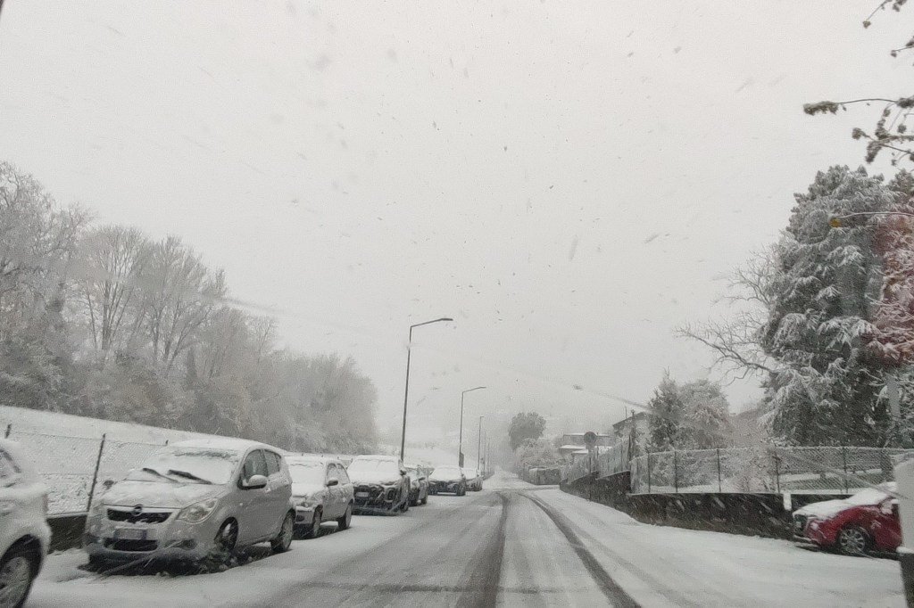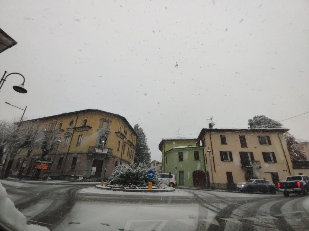 Già dalle 7 la neve ha iniziato ad attaccare al suolo, sorprendendo molti residenti diretti al lavoro o a scuola. La circolazione è rimasta prudente per l’intera mattinata: mezzi in transito a velocità ridotta, qualche auto in difficoltà nelle zone più pendenti e traffico più intenso lungo la viabilità principale.